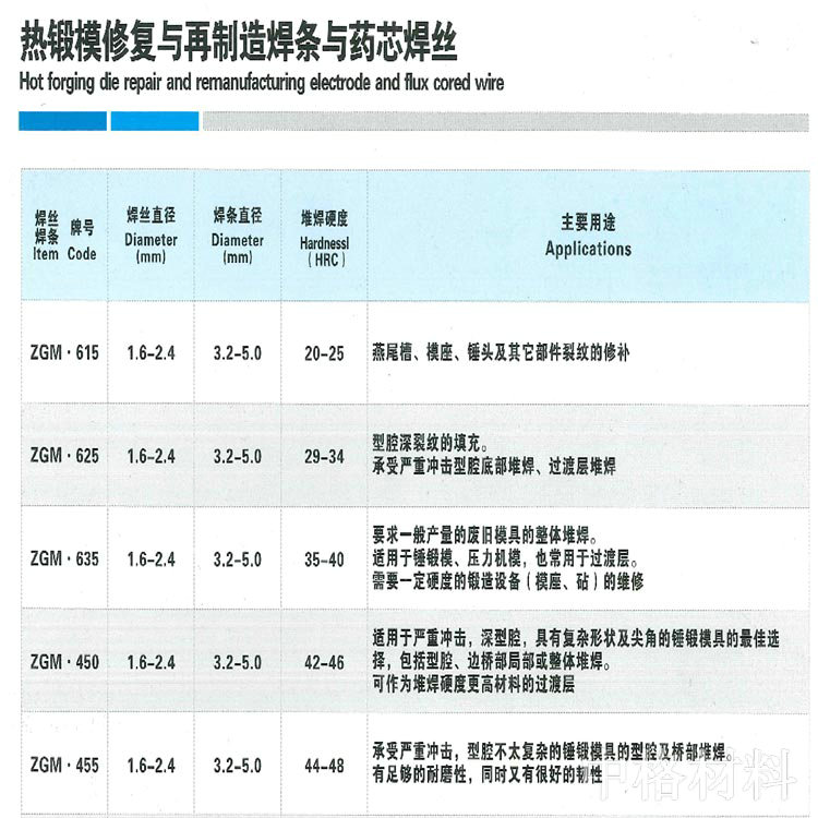 產(chǎn)品分類(lèi):熱鍛模修復(fù)與再制造焊條與藥芯焊絲